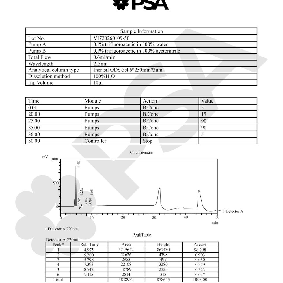 GHK-Cu (Copper Peptide) is a naturally occurring tripeptide found in human plasma, saliva, and urine. This powerful peptide plays a significant role in tissue repair, skin regeneration, and anti-aging processes. It binds with copper ions to enhance wound healing, stimulate collagen production, and repair damaged skin cells. GHK-Cu is also known for its anti-inflammatory properties and ability to reduce oxidative stress, making it a versatile peptide used in skincare, hair care, and general health maintenance.